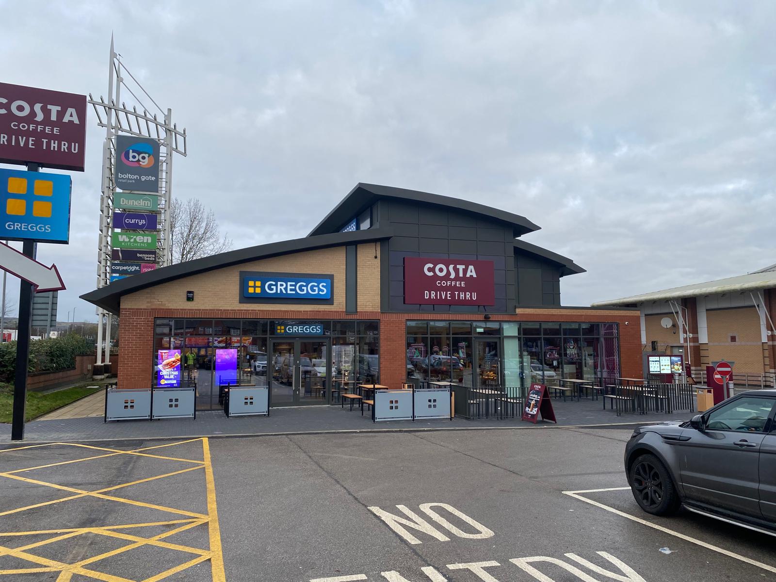 This project involved the reconfiguration and refurbishment of the former Pizza Hut unit at Bolton Gate Retail Park to create two new retail spaces — a Greggs and a Costa Coffee with an integrated drive-thru lane. The scheme formed part of the client’s asset-enhancement strategy, repurposing an under-utilised unit into two high-profile, nationally recognised food outlets to improve site value and footfall.